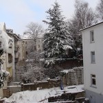 Teif Daisy brachte auch auf dem Ölberg Mengen von Schnee. Der Kleinbus hatte am 8. und 9.1. Probleme. Nur wenige PKW waren unterwegs. Die Menschen blieben meist Zuhause.