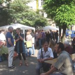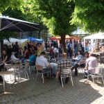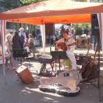 Bei schönstem Wetter trafen sich die Menschen vom Ölberg auf dem Künstler- und Kulturmarkt auf dem Otto-Böhne-Platz. Lutz Griebel spielte auf der Gitarre. Leider gibt es das Cafe Stielbruch nicht mehr.